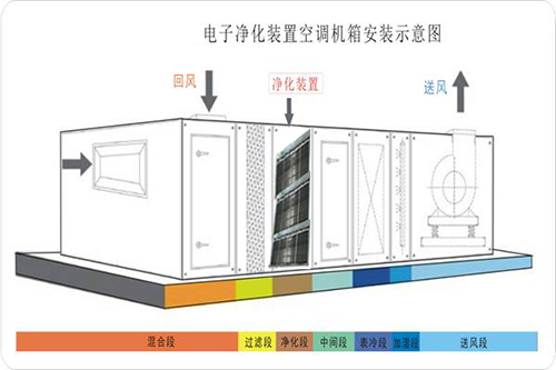 電子凈化單元:去除空氣中直徑為0.3微米以上的微顆粒,如灰塵、花粉、香煙味、廚房油煙和細(xì)菌等。